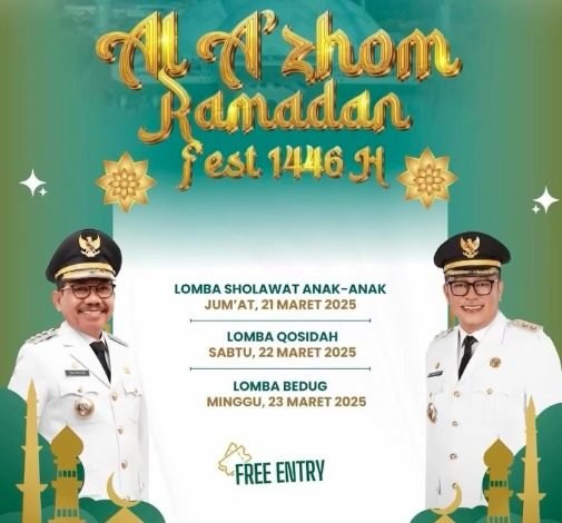 Ketua Pelaksana Al-A’zhom Ramadan Fest Juhri Rahmatullah menuturkan, agenda perlombaan tersebut diselenggarakan untuk menyeramakkan pekan terakhir bulan Ramadan ini. Berbagai perlombaan yang akan diselenggarakan meliputi lomba selawat anak, lomba kasidah dan lomba bedug yang akan diselengarakan 21-23 Maret 2025.