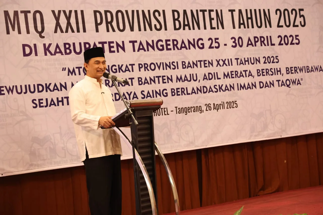 Kota Tangerang,  – Wakil Gubernur Banten A Dimyati Natakusumah mengingatkan puluhan Dewan Hakim MTQ XXII Provinsi Banten tahun 2025 untuk bersikap netral, adil, jujur dan profesional. Sehingga MTQ ini menghasilkan para juara yang murni untuk kemudian dilombakan pada MTQ tingkat nasional. Hal itu diungkapkan Dimyati saat memberikan arahan pada pengukuhan 146 Dewan Hakim MTQ XXII Tingkat Provinsi Banten 2025 di Kabupaten Tangerang 25-30 April 2025, di Hotel Yasmine, Kota Tangerang, Sabtu (26/4/2025).
