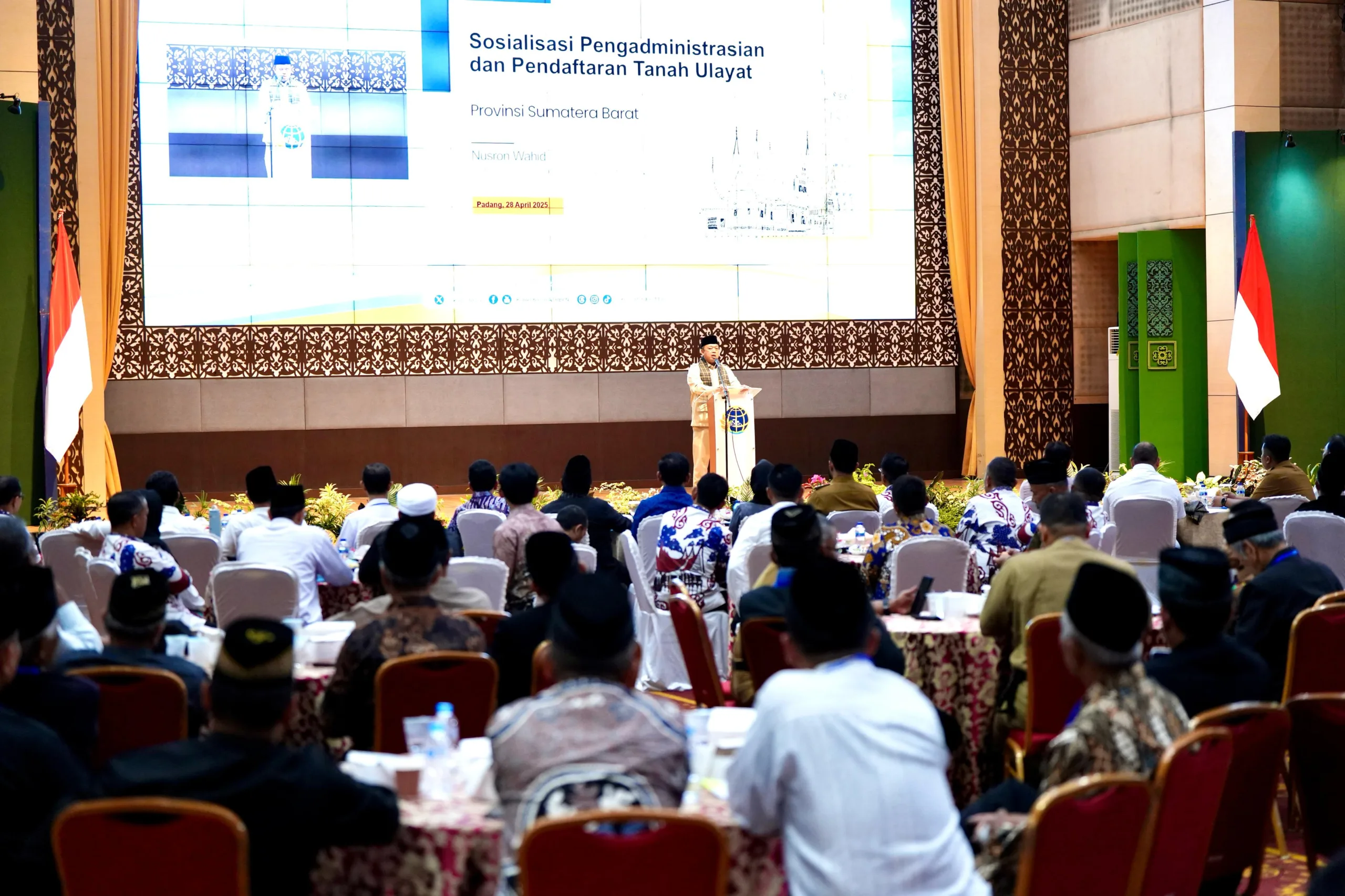 Padang, Sundapost.co.id – Menteri Agraria dan Tata Ruang/Kepala Badan Pertanahan Nasional (ATR/BPN), Nusron Wahid, secara resmi membuka kegiatan Sosialisasi Pengadministrasian dan Pendaftaran Tanah Ulayat di Provinsi Sumatera Barat, pada Senin (28/04/2025). Sosialisasi ini menjadi bagian dari upaya pemerintah untuk memberikan pengakuan dan perlindungan hak bagi masyarakat hukum adat.