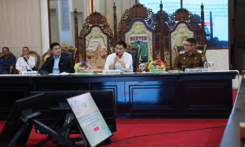 Dalam paparannya, Kepala Dinas Kesehatan dr Ati Pramudji Hastuti, di bidang kesehatan, program prioritas Provinsi Banten saat ini adalah : pelayanan kesehatan ibu dan anak tiga terbawah nasional, penanggulangan TBC pemeriksaan sebanyak-banyaknya, cek kesehatan gratis urutan empat nasional, Penanggulangan stunting masih di angka 21 persen, program peningkatan akses dan pelayanan kesehatan.