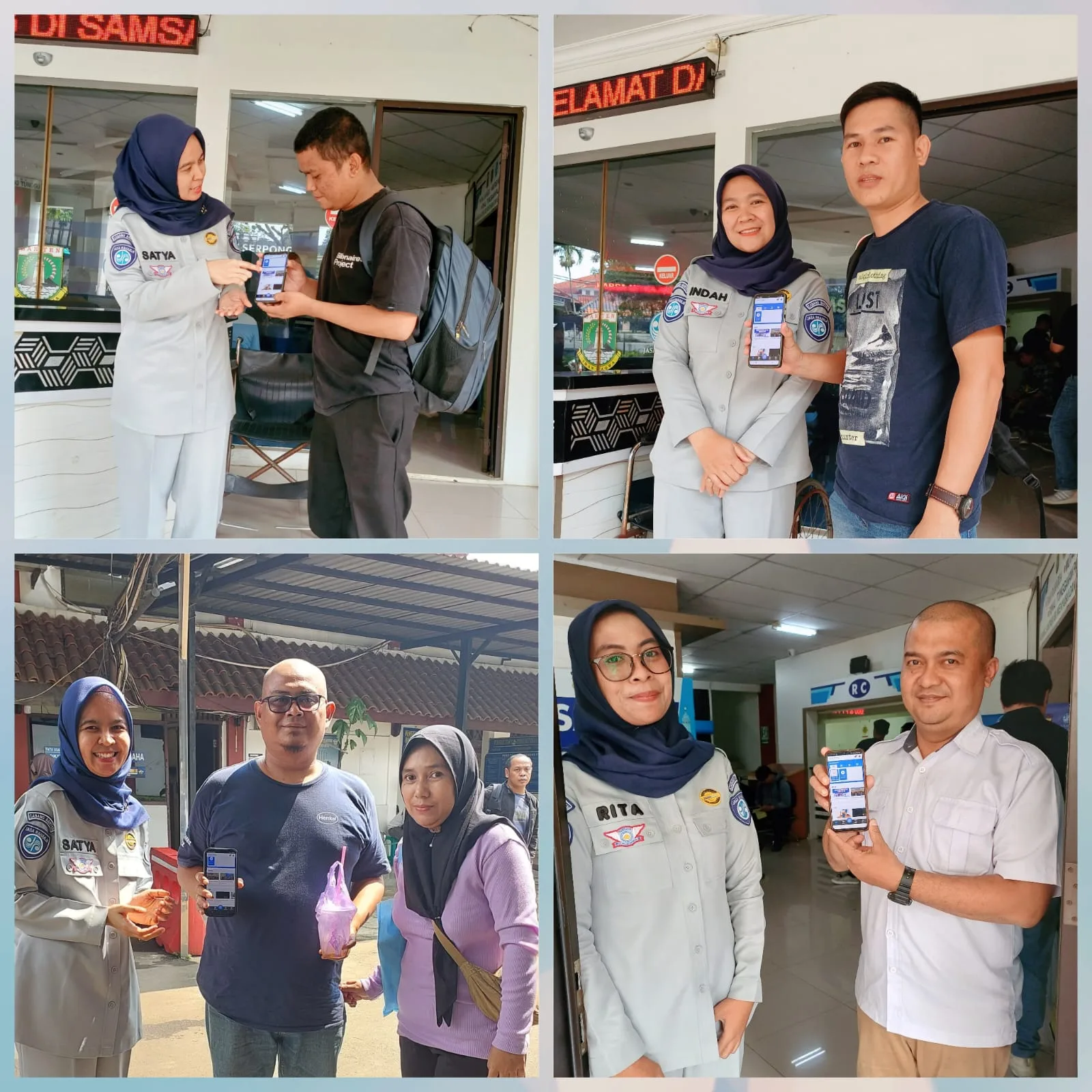 Tangerang, Sundapost.co.id – Petugas Jasa Raharja Tangerang, Satya Wardhani dan rekan-rekan yang bertugas di Samsat Serpong memberikan sosialisasi penggunaan aplikasi JR Safety Road kepada para wajib pajak yang sedang melakukan pengurusan administrasi di Samsat Serpong.