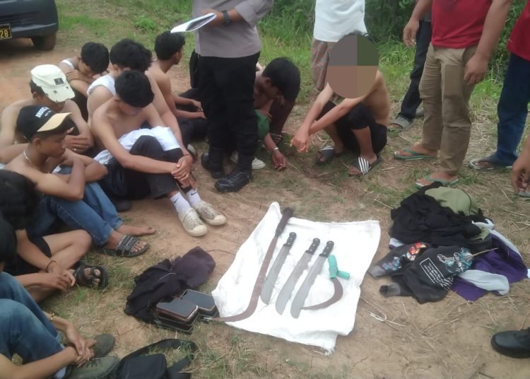 Dikatakan Kapolsek dari ke 17 pelajar ini diamankan berbagai jenis senjata tajam, diantaranya 3 bilah pedang, 1 celurit dan sabit panjang 1 buah. Selain Itu, turut diamankan 17 motor yang digunakan para pelajar.