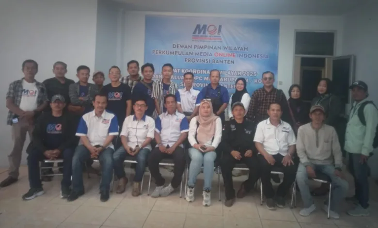 Serang – Media Online Indonesia (MOI) Provinsi Banten mengadakan Rapat Koordinasi Wilayah sekaligus evaluasi kinerja Dewan Pimpinan Cabang (DPC) dari seluruh kabupaten dan kota se-Provinsi Banten. Kegiatan berlangsung di Aula KNPI, Kawasan Pusat Pemerintahan Provinsi Banten (KP3B), pada Sabtu (19/7/2025).