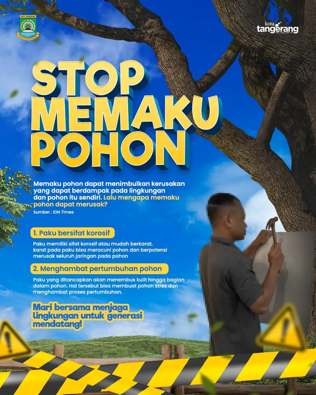 Kota Tangerang, – Pemerintah Kota (Pemkot) Tangerang mengingatkan masyarakat untuk tidak sembarangan memaku atau merusak pohon yang berada di ruang publik, khususnya di jalur hijau, taman dan trotoar.