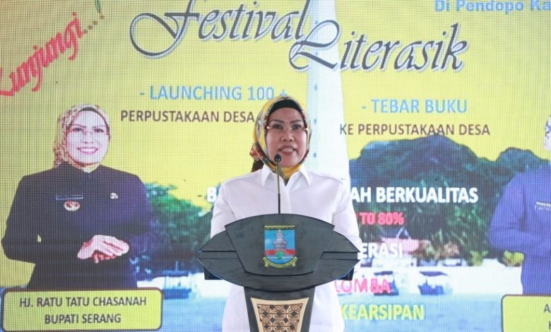Serang, Sundapost.co.id – Bupati Serang Ratu Tatu Chasanah melaunching 100 Perpustakaan Desa Digital sekaligus membuka Festival Literasik dan Musik tingkat Kabupaten Serang dalam rangka Hari Kunjung Perpustakaan di Halaman Pendopo Bupati pada Rabu, 11 September 2024. Perpustakaan versi digital bertujuan untuk meningkatkan minat membaca masyarakat.