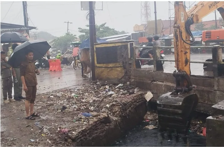 Walikota Serang Budi Rustandi turun langsung memantau kondisi di sekitar Pasar Rau. Ia memastikan bahwa aliran air berjalan lancar dan tidak menyebabkan luapan ke jalan raya.