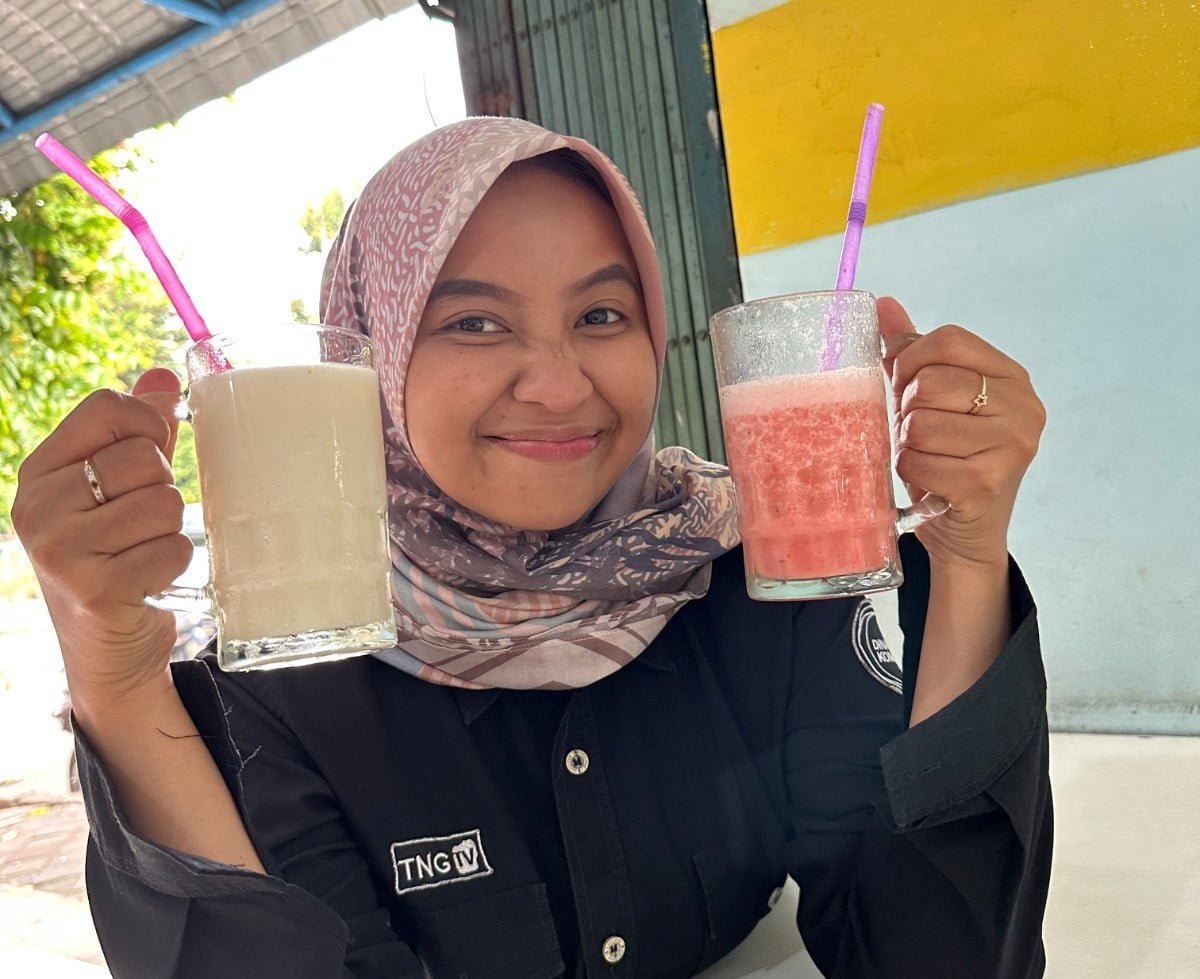“Untuk es dibandrol dengan harga Rp 15 ribu hingga Rp 18 ribu. Kalau untuk jus dibandrol dengan harga Rp 12 ribu untuk ukuran kecil dan Rp 15 ribu untuk ukuran besar. Nah, sering kali ada buah yang sering banget cepet abisnya yaitu alpukat. Bisa dibilang best sellernya disini dan es teler salah satunya,” lanjutnya.