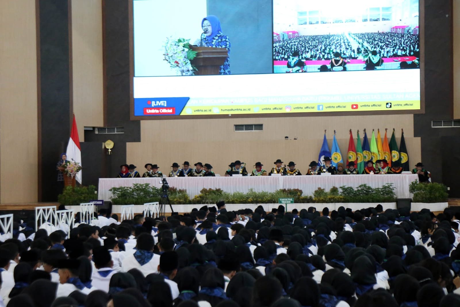 Kota Serang, Sundapost.co.id – Penjabat (Pj) Sekretaris Daerah Provinsi Banten berpesan kepada para mahasiswa baru Universitas Sultan Ageng Tirtayasa untuk memanfaatkan informasi di era digital khususnya internet untuk meningkatkan kecerdasan serta keahlian diri sambut Indonesia Emas 2045. Disebutkan masyarakat Banten semakin terbuka dengan dunia luar, hal itu merujuk pada tingkat penetrasi internet di Provinsi Banten yang mencapai 89,1 persen.