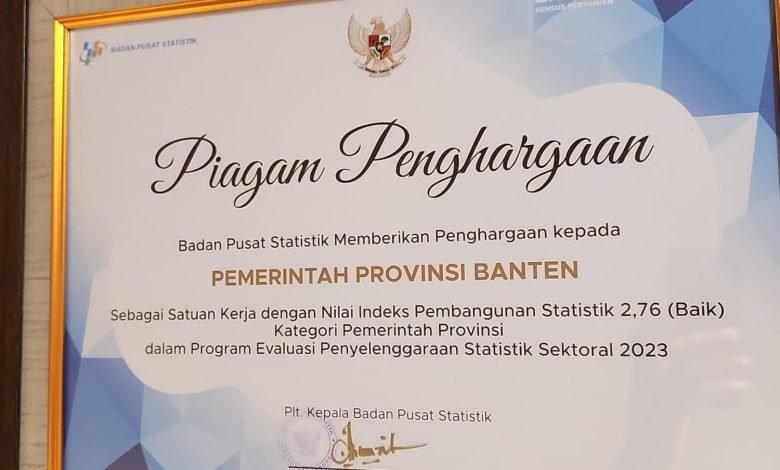 Penghargaan tersebut diberikan kepada Pemprov Banten setelah dilakukan Program Evaluasi Penyelenggaraan Statistik Sektoral (EPSS) Tahun 2023.