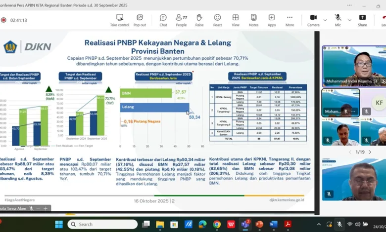 Serang, Sundapost.co.id – 24 Oktober 2025 – Kinerja Anggaran Pendapatan dan Belanja Negara (APBN) Provinsi Banten hingga 30 September 2025 menunjukkan hasil yang semakin baik. Realisasi pendapatan dan belanja negara mencatatkan tren positif dibandingkan bulan sebelumnya, sebagaimana disampaikan oleh para pimpinan Kemenkeu Satu Regional Banten.