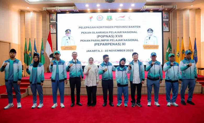 Banten, Sundapost.co.id – Gubernur Andra Soni melepas kontingen Provinsi Banten yang akan berlaga pada Pekan Olahraga Pelajar Nasional (Popnas) XVII dan Pekan Paralimpik Pelajar Nasional (Peparpenas) XI Tahun 2025 di Jakarta. Kontingen yang diberangkatkan sebanyak 328 orang terdiri dari atlet, pelatih, dan ofisial yang akan membawa nama baik Banten di ajang olahraga pelajar nasional tersebut.