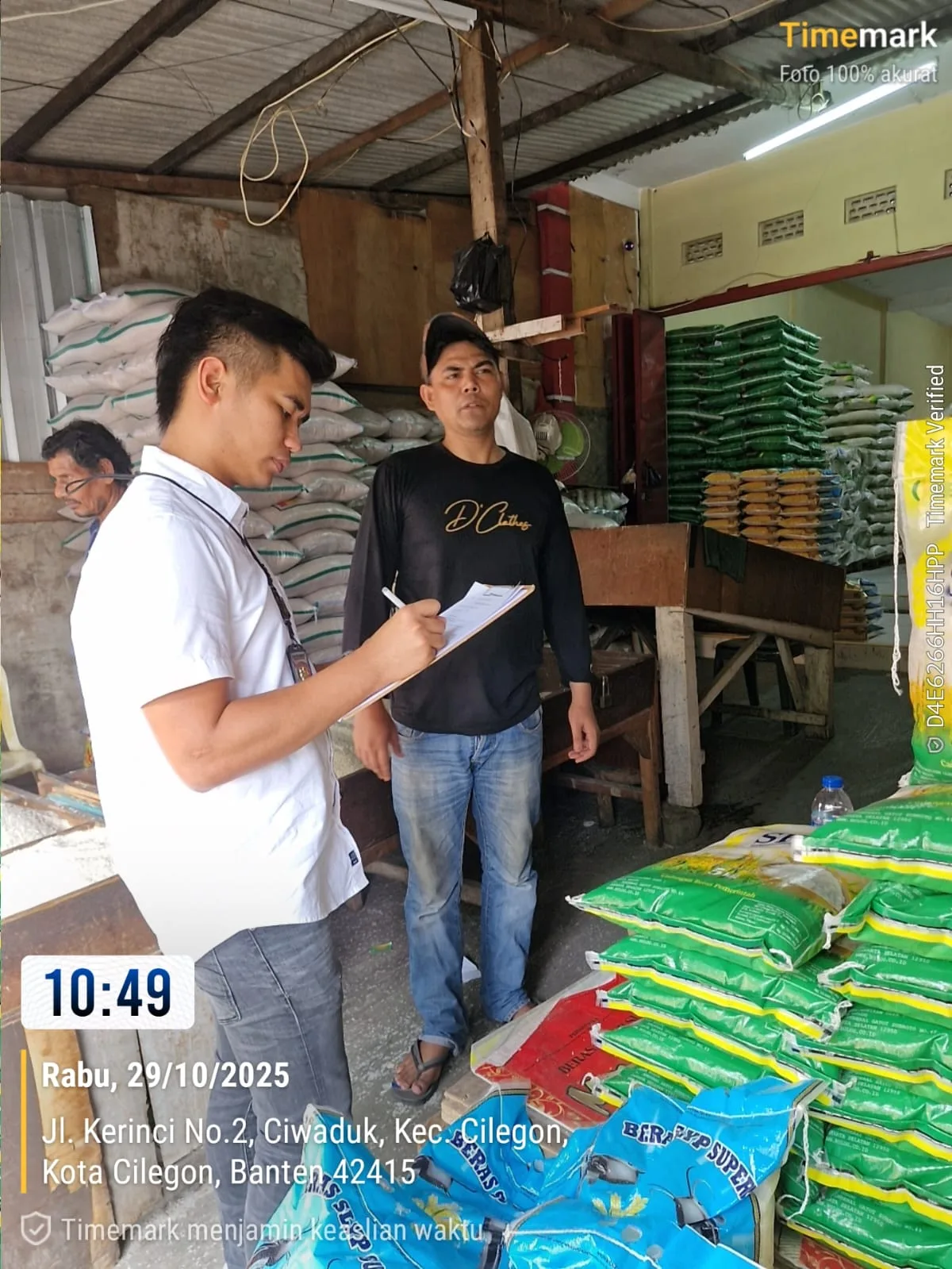 Kegiatan pemantauan tersebut dilaksanakan di beberapa lokasi, antara lain (Pasar Tradisional) Toko Beras Mandala, Alamat Ciwaduk,Cilegon pemilik/penanggung jawab : Sdr. MARTUNIS dan (Retail Modern) Transmart Cilegon, Alamat Jl. KH. Yasin Beji Kebondalem, Purwakarta, Cilegon penanggung jawab : Sdr. CECEP, Rabu (29/10/2025) pagi.