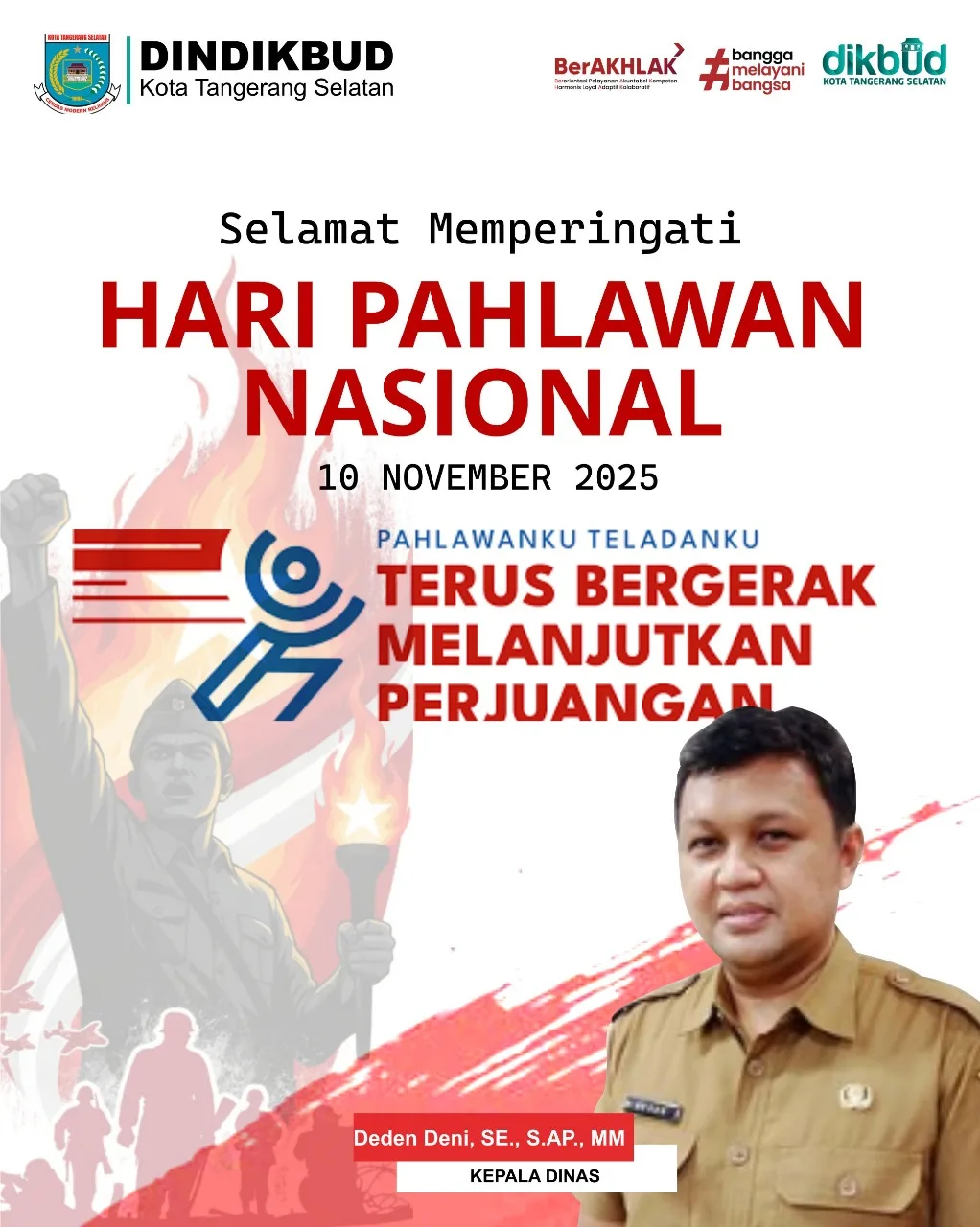 Dindikbud Kota Tangerang Selatan mengucapkan selamat memperingati Hari Pahlawan 2025. Pahlawanku Telandanku..