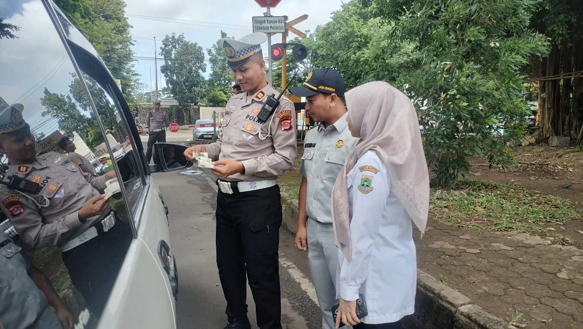 Serang, Sundapost.co.id – Dalam upaya meningkatkan keselamatan berlalu lintas dan memastikan kepatuhan Pajak Kendaraan Bermotor (PKB) serta Sumbangan Wajib Dana Kecelakaan Lalu Lintas Lalan (SWDKLLJ). Jasa Raharja bersama Bapenda Samsat Kota Serang dan Unit Lantas Polres Serang kembali menggelar operasi razia pada hari rabu tanggal 12 November 2025 di Jalan Raya Jendral Sudirman, tepatnya di depan stadion Maulauna Yusuf Kota Serang