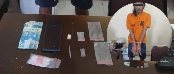 Dalam penggerebekan yang dilakukan di rumah terduga pelaku, petugas menemukan sejumlah barang bukti yang disimpan di dalam lemari rumah. Barang bukti yang diamankan antara lain 1 paket plastik klip berisi kristal putih diduga sabu dengan berat netto 0,15 gram, 4 lembar plastik klip kosong, 1 bal plastik klip kosong, 1 unit handphone Android merk Samsung, Uang tunai Rp150.000 dan 1 buah pipet plastik yang digunakan sebagai skop.