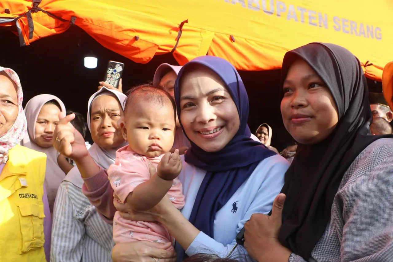Susuri Banjir di Cinangka, Bupati Serang Ratu Zakiyah Salurkan Bantuan Makanan Siap Saji