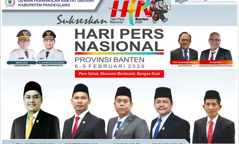 DPRD Kabupaten Pandeglang mengucapkan selamat memperingati Hari Pers Nasional 2026. “Pers Sehat, Ekonomi Berdaulat, Bangsa Kuat”.