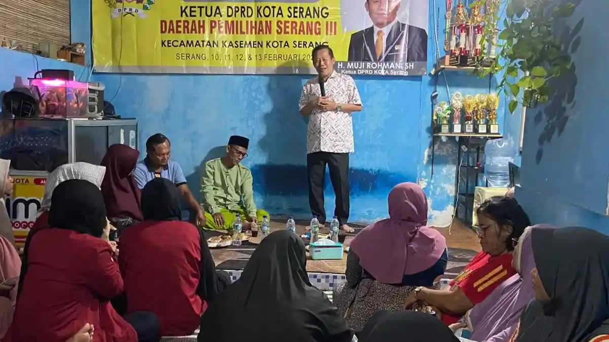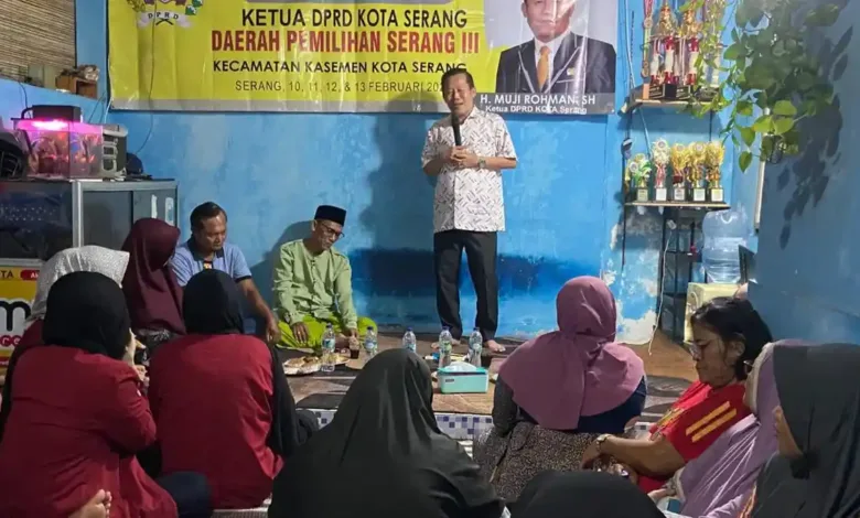 KOTA SERANG – Ketua DPRD Kota Serang, Muji Rohman, kembali turun langsung ke tengah masyarakat melalui kegiatan reses masa persidangan II Tahun 2025–2026. Kali ini, reses digelar di Komplek Pondok Angsana Indah (PAI) 1, Kelurahan Kasemen, Kecamatan Kasemen, Kota Serang, Selasa (10/2/2026) malam.