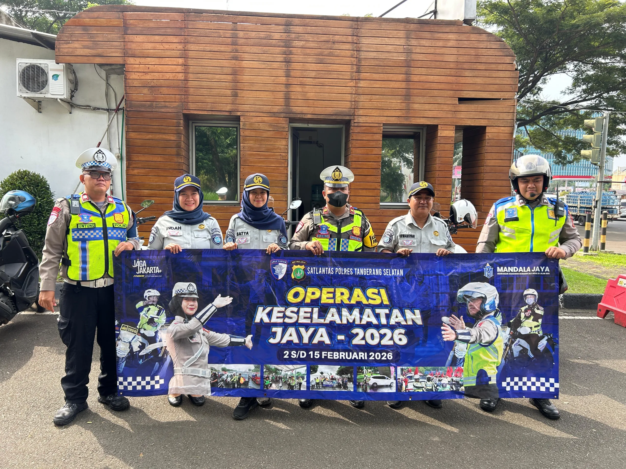 Tangerang,Sundapost.co.id – Pada hari Sabtu tanggal 14 Februari 2026 Irwansyah sebagai Penanggung Jawab Samsat Kelapa Dua dan Satya Wardhani sebagi Penanggung Jawab Samsat Serpong mewakili Jasa Raharja Cabang Tangerang bersama Satlantas Polres Tangerang Selatan melaksanakan Giat Aksi Simpatik Keselamatan Berlalu Lintas di depan Pos Polisi Presisi Polres Tangerang Selatan.