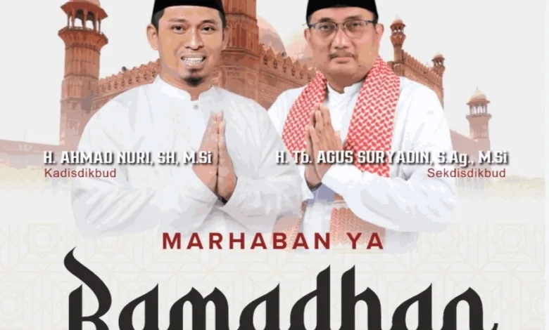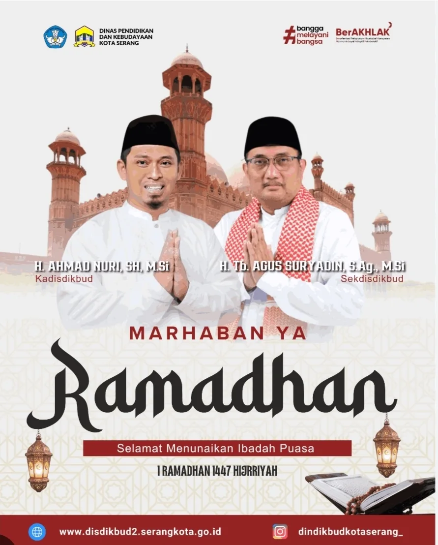 Dindikbud Kota Serang Mengucapkan Marhaban Ya Ramadhan 1447 H/ 2026. Selamat berpuasa di bulan Ramadhan, semoga puasa tahun ini penuh berkah dan makna.