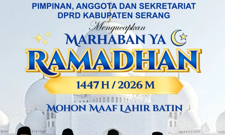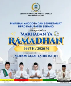 Pimpinan dan Sekretariat DPRD Kabupaten Serang Mengucapkan Marhaban Ya Ramadhan 1447 H/ 2026. Selamat berpuasa di bulan Ramadhan, semoga puasa tahun ini penuh berkah dan makna.