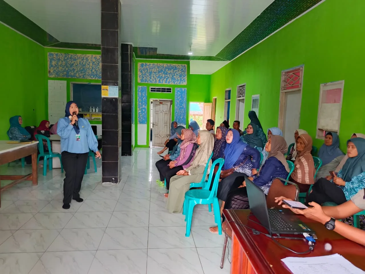 Penyuluhan ini menghadirkan pemateri dari Dinas Lingkungan Hidup (DLH) Kabupaten Serang, Ibu Mimi, yang memberikan edukasi seputar pengelolaan sampah rumah tangga, upaya penghijauan, serta cara menjaga kelestarian sumber air. Para warga yang hadir tampak antusias mengikuti pemaparan dan diskusi interaktif yang berlangsung, mengingat Desa Sukamenak merupakan salah satu wilayah yang perlu mendapatkan perhatian lebih dalam hal kebersihan lingkungan.