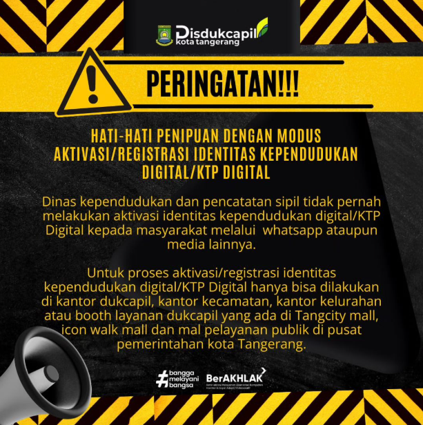 Disdukcapil Kota Tangerang Ingatkan Masyarakat Waspadai Penipuan Berkedok Aktivasi Identitas Kependudukan Digital