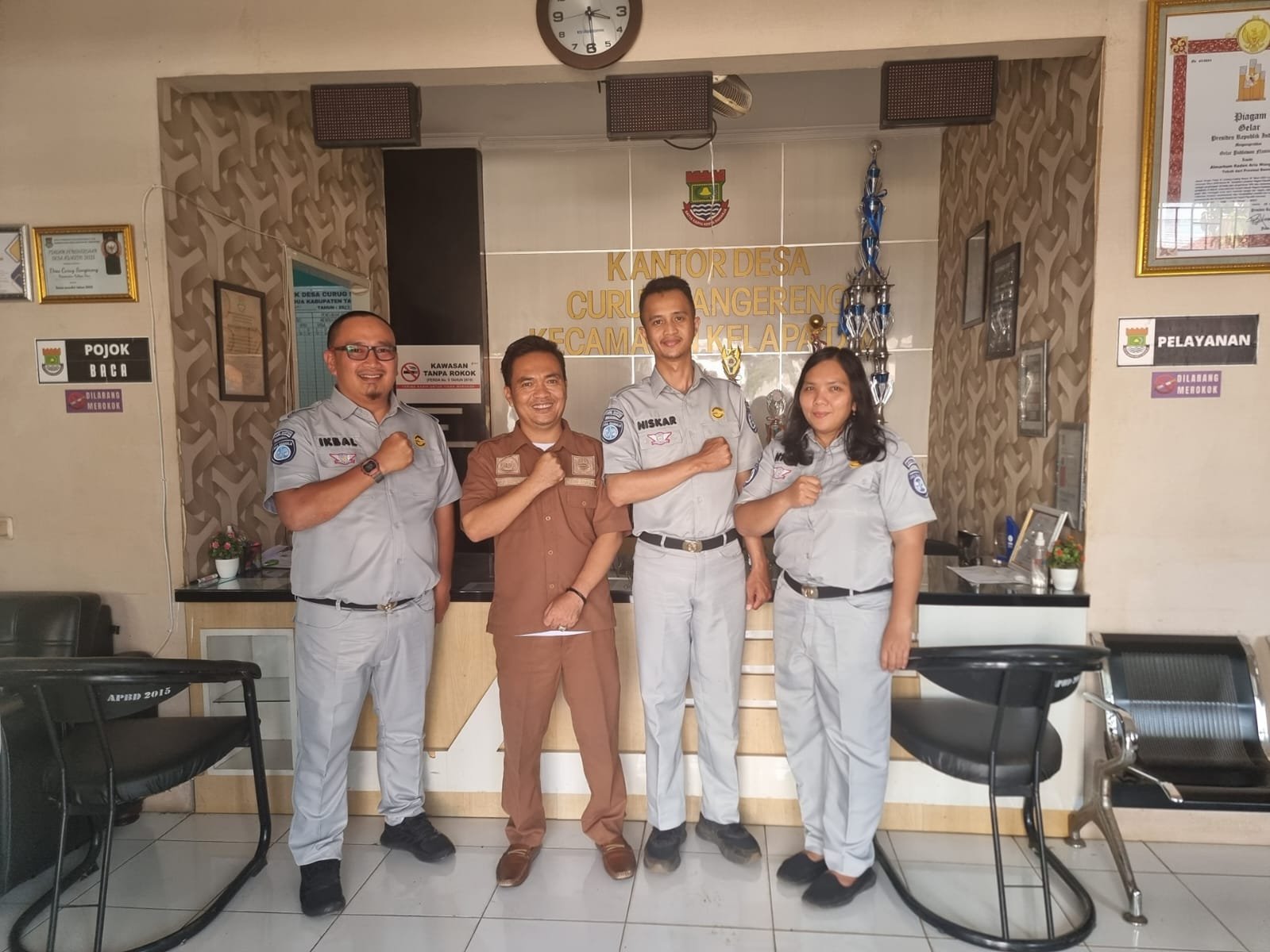 Tangerang – Petugas PT Jasa Raharja Tangerang, petugas Samsat Kelapa Dua melakukan kunjungan ke Kantor Kelurahan Curug Sangereng Kab.Tangerang langsung disambut oleh Kepala Seksi Pemerintahan Markum di Kantor Kelurahan Curug Sangereng, Kab.Tangerang (19/02). Sekaligus berkoordinasi dalam rangka sosialisasi pelayanan tentang jaminan asuransi kecelakaan lalu lintas dan sosialisasi program Samsat Digital Nasional (SIGNAL) di wilayah Provinsi Banten.