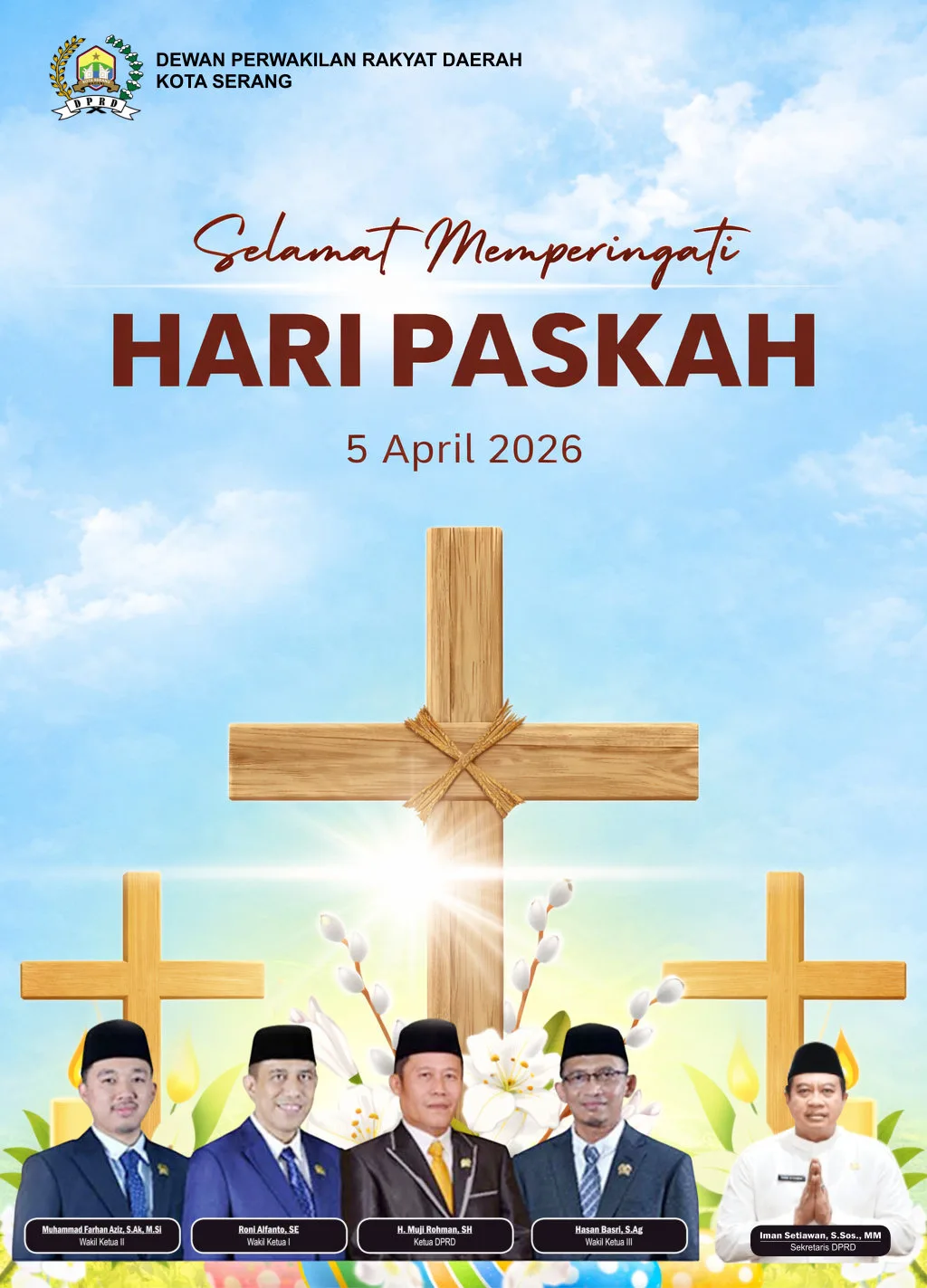 DPRD Kota Serang mengucapkan selamat memperingati Hari Paskah 2026.  “Kristus Bangkit Membarui Kemanusiaan Kita”.