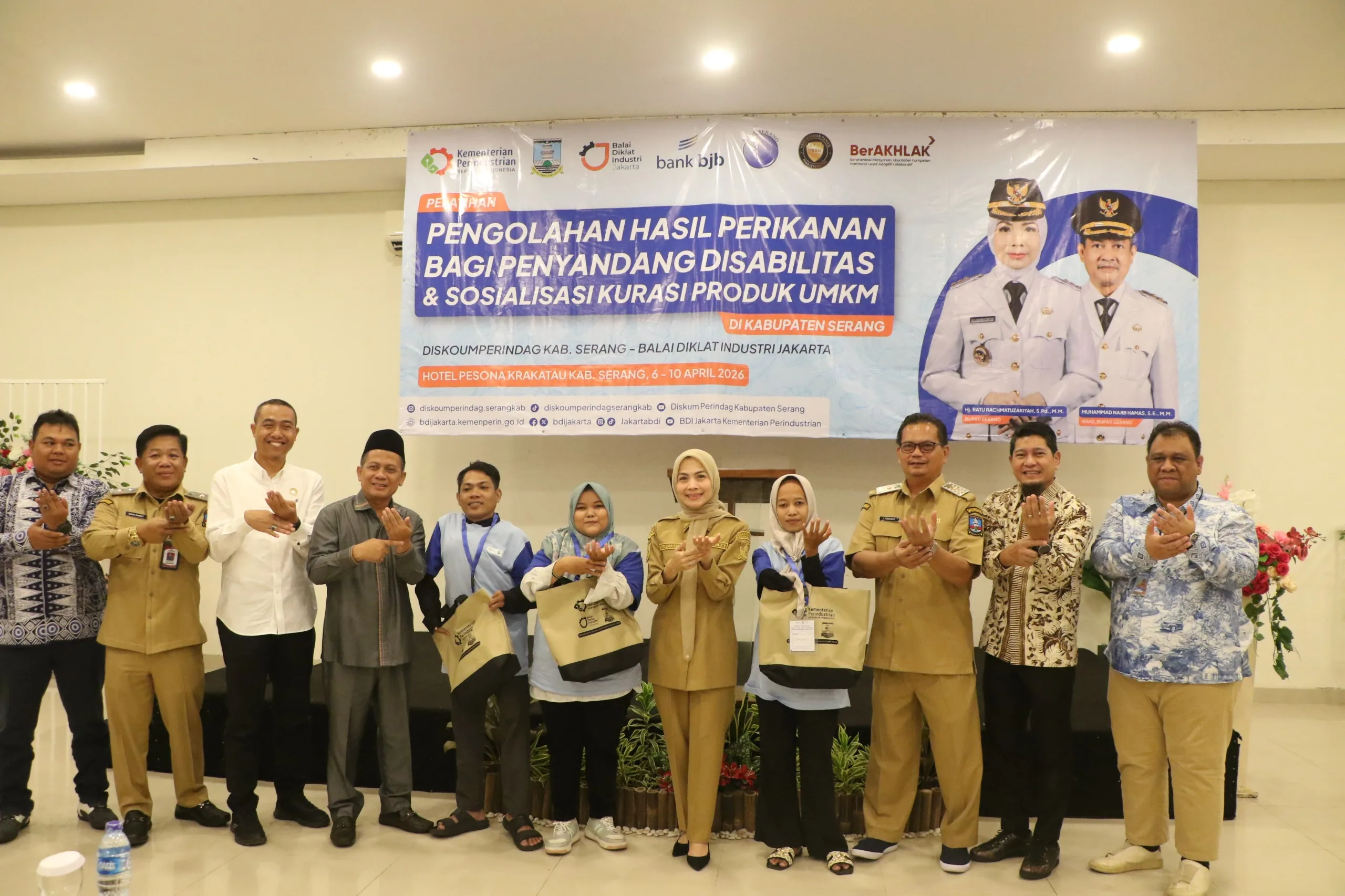 Kab Serang,Sundapost.co.id – Bupati Serang Ratu Rachmatuzakiyah memberikan Pelatihan pengolahan hasil perikanan bagi penyandang disabilitas Kabupaten Serang dan Sosialisasi Kurasi Produk UMKM tahun 2026 di Pesona Krakatau Hotel and Cottage Kecamatan Cinangka pada Senin, 6 April 2026.