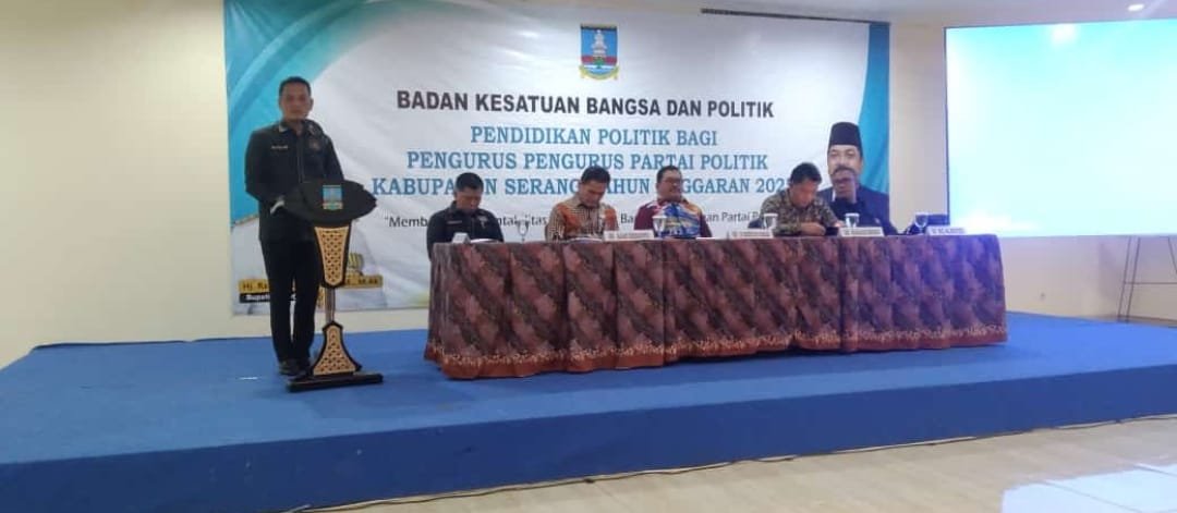 Pendidikan politik berlangsung selama 3 hari sejak Minggu, 2 Februari 2025 di Kabupaten Bogor rutin dilakukan setiap tahun dibuka oleh Pj Sekda Kabupaten Serang, Rudy Suhartanto tersebut di ikuti sebanyak 50 pengurus parpol tingkat Kabupaten Serang. Turut hadir Kepala Bakesbangpol Kabupaten Serang, Epi Priatna dan Sekretaris Bakesbangpol Wawan Ihkwanudin dan Kepala Bidang Politik Dalam Negeri dan Organisasi Masyarakat (Poldagri Ormas) Bakesbangpol Kabupaten Serang, Dik Dik Abdul Hamid.