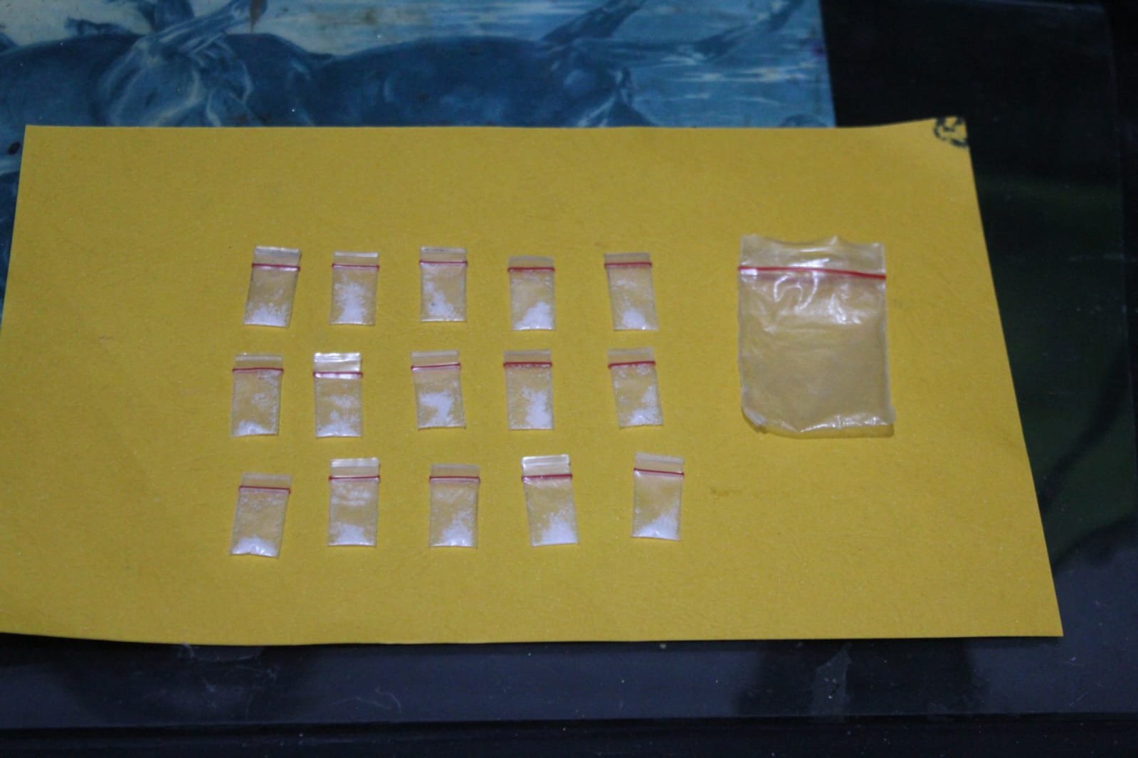 Selanjutnya dilakukan penggeledahan dan menemukan barang bukti berupa 15 paket plastik klip kecil yang berisikan kristal putih diduga narkotika jenis shabu.