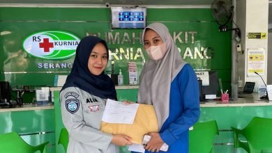 Petugas Jasa Raharja Samsat Kramatwatu, Alia Rahmadhani berkunjung dan sekaligus menjemput tagihan jaminan korban kecelakaan di RS Kurnia Serang pada…