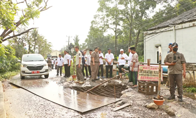 Rusak, Wabup Serang Najib Hamas Tinjau Jembatan Cikambuy