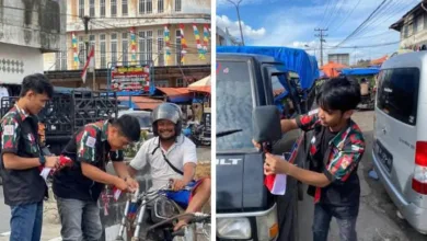 Sambut HUT RI ke 80, SAPMA LMP Tanah Karo Bagikan Bendera Merah Putih di Kabanjahe